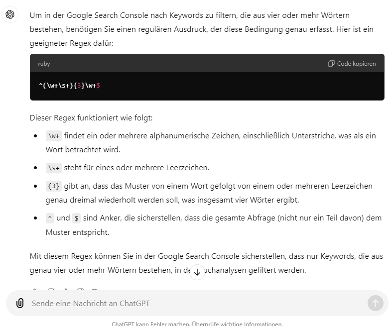 Den Code für einen Regex selbst zu erstellen, ist ziemlich kompliziert. Mithilfe von KI Tools ist es aber kein Problem.