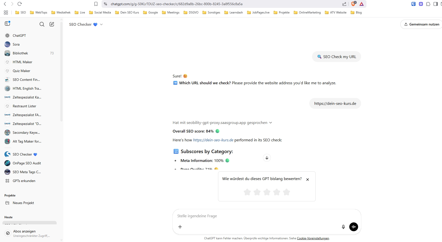 Der Schema Markup Generator GPT gibt die Strukturierte Daten für jeden gewünschten Bereich aus. Auch Codes kannst du damit testen, falls Fehler vorhanden sind.